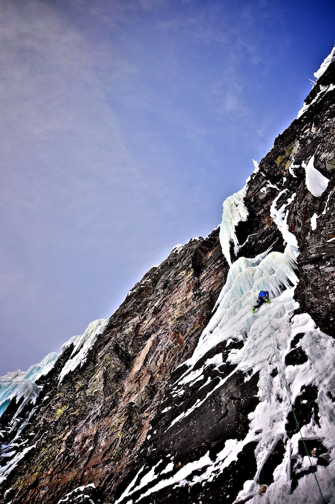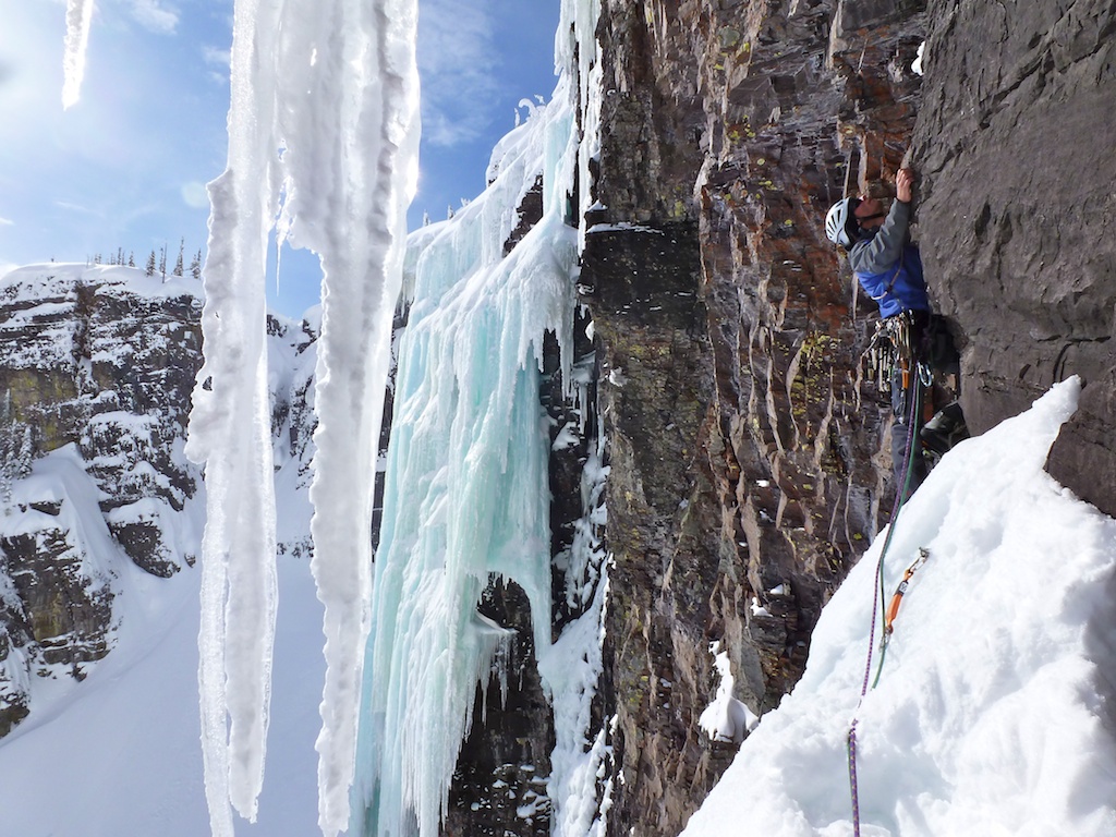 As high clouds moved over Glacier, I decided to climb Brainstem.  It was in amazing shape.  The left side was touching down creating 50m of vertical ice.  It was one of the best pitches I’ve climbed.  I threaded off the climb and we packed up to head home.  Ski conditions were great so the ski out was actually an enjoyment.  Back to the car early, we made our way to Whitefish for dinner and drinks with friends.