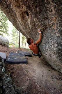 Later we headed to another boulder which was also magnificent. Two usable sides; one with nice warm-ups and the other with problems ranging from V0 to V7 or so. This one was more of a high-ball boulder, towering up about 25 feet.