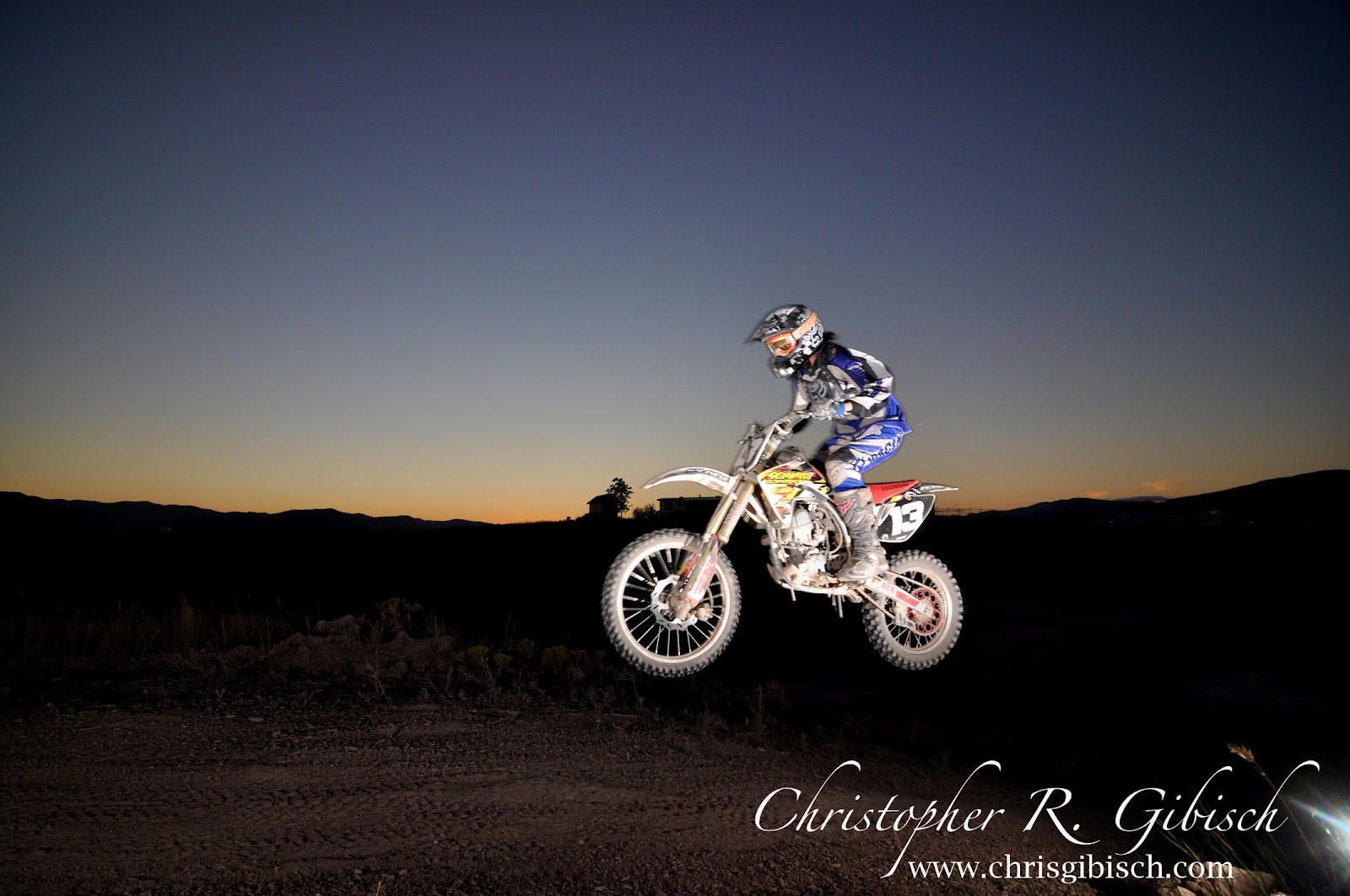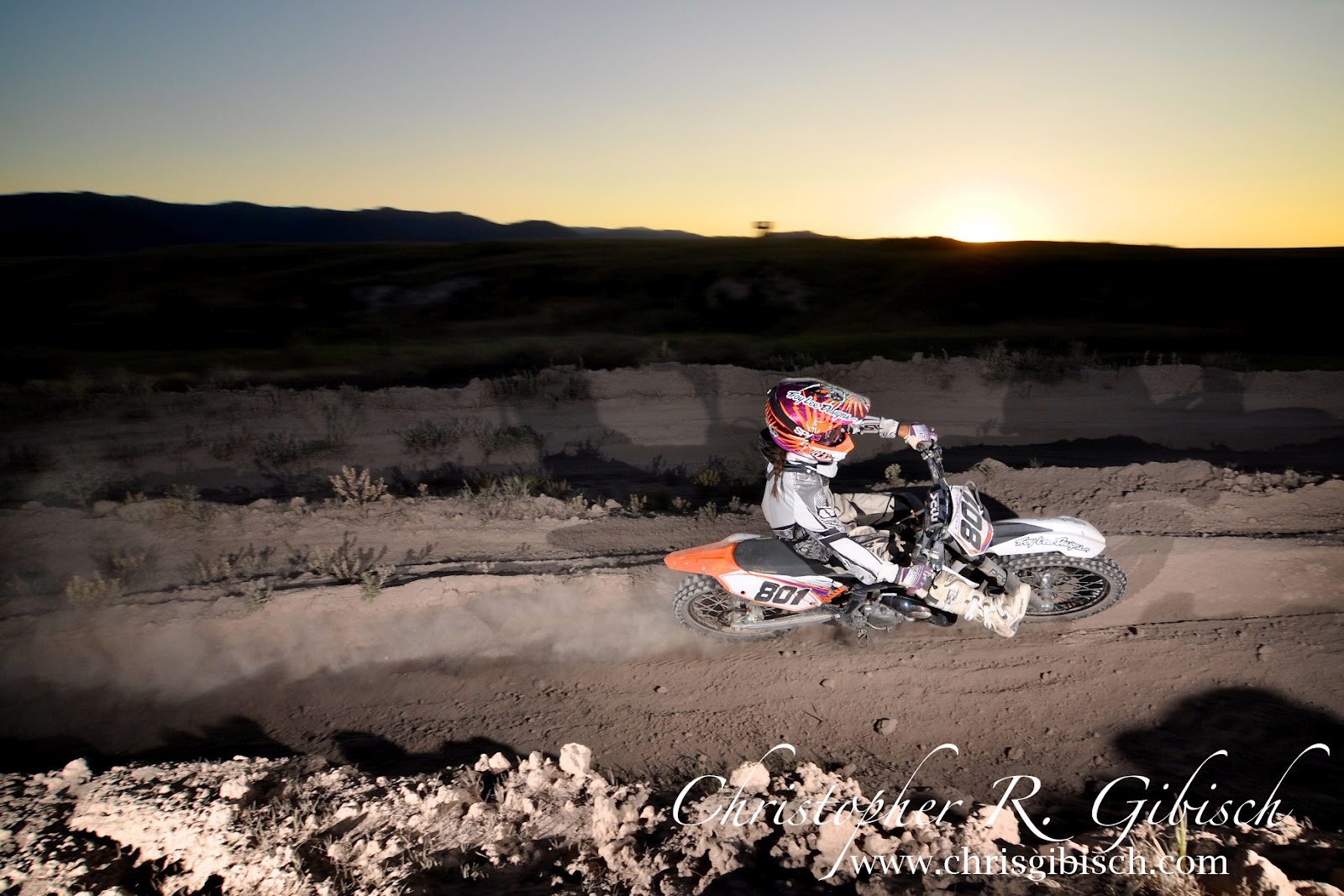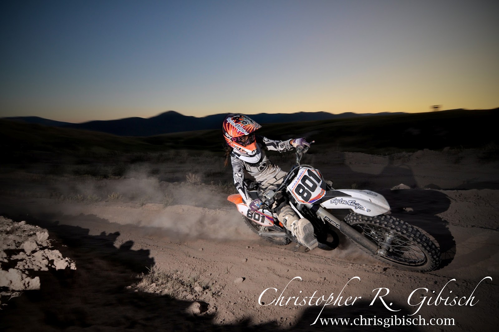 The other night I finally got the opportunity to ride a track. Being the rookie that I am, it was a great time learning my bike and getting advice from the experienced riders. After a few hours of working the corners and learning to jump properly, I called it quits and pulled out my camera. There were two younger girls riding, both of whom race, who were willing to let me take some pics. As the sun set, I positioned the speed lights to illuminate the riders while maintaining an optimal exposure for the ambient light. It was my first try and I was happy with the results. I’m looking forward to trying it again.