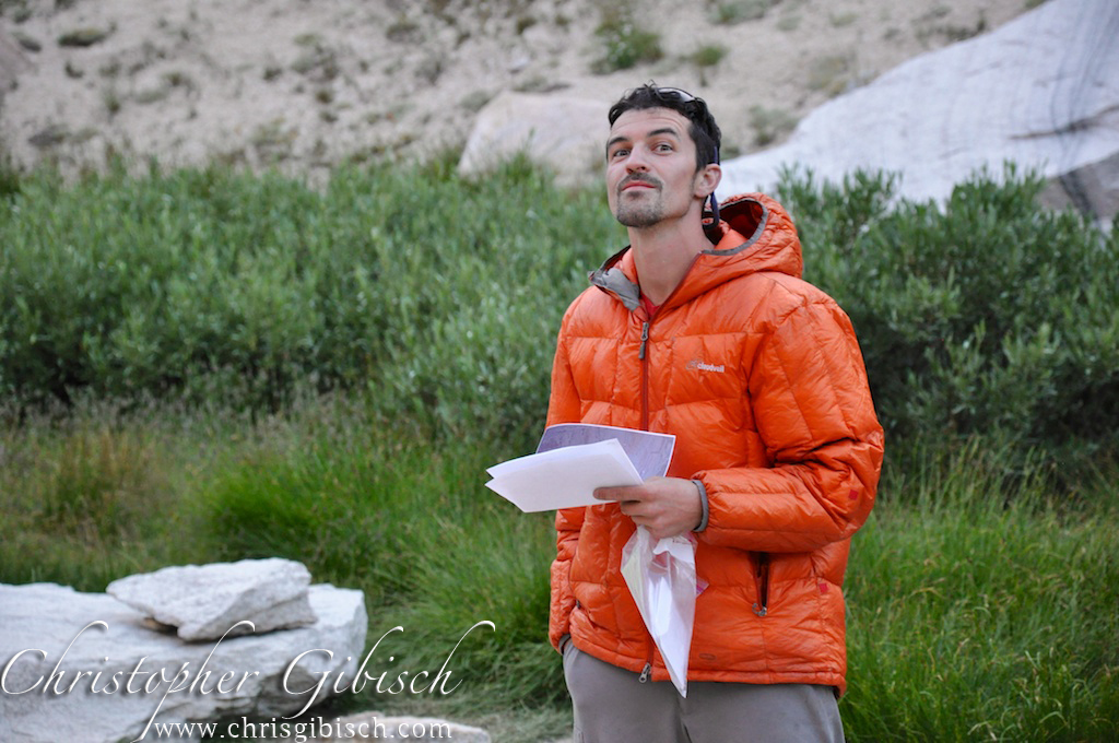 After 16 hours in the car, we found ourselves at Twin Lakes and the trailhead to the Hulk. We gather the necessary permits and began the hike in. The approach turned out to be mellow, heading up the valley to Barney Lake before turning left for a slight grunt to the upper basin. After 2.5 hours we were at camp and the base of the Hulk. The granite fortress stretched tall above us and all of the striking features we had seen in mags were now at our fingertips. The short approach gave us plenty of time to crag a little so we decided to start out with a stinger: Venturi Effect. Kyle’s goal was to take a look at the crux pitch (3rd) and possibly give it a go. From the moment you leave the ground, Venturi Effect is on ya. Very delicate smearing and stemming kept forcing our best technique. I took on the second pitch, which started out quite casual then became real. More delicate moves with spaced out gear kept me on edge. Eventually we were at the base of the crux pitch and looking up one of the most impressive stem corners either of us had seen. Unfortunately it was baking in the heat and we were tired from the other two pitches. We decided to head back to camp for shade and some dinner.